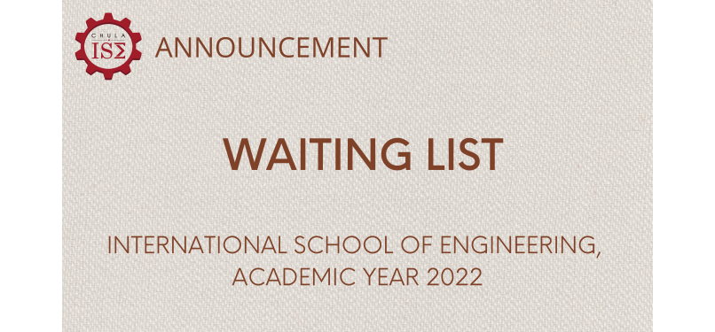 ANNOUNCEMENT WAITING LIST INTERNATIONAL SCHOOL OF ENGINEERING, ACADEMIC YEAR 2022