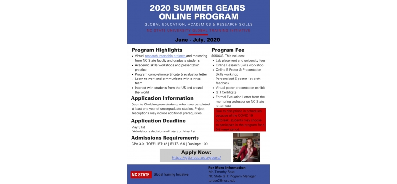 To help reduce the exposure and the spread of the Covid-19 virus, ISE is temporarily closed (March 22 – Apr 30, 2020). For any queries, please contact us at: LINE@: @ise_chula Facebook: isechula Email: ise@chula.ac.th Please tag (LINE & FB) or specify in email subject the section that you’d like to contact: Academic, Admission, Accounting, HR, International Affairs (including all exchange programs), PR&Student Affairs (including internship program), or Others.