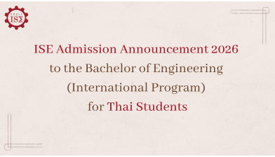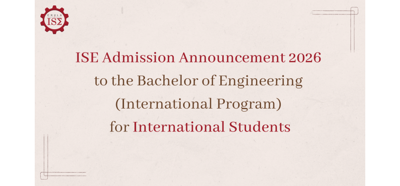 Admission Criteria Admission Criteria AY 2026 ISE Online Admission 2026 (Thai): https://admission.ise.eng.chula.ac.th High School Certificate Equivalency System Please visit High School Certificate Equivalency System Early Admission Round Announcement ประกาศจุฬาลงกรณ์มหาวิทยาลัย เรื่อง การรับสมัครและคัดเลือกนักเรียนเข้าศึกษาในหลักสูตรวิศวกรรมศาสตรบัณฑิต (หลักสูตรนานาชาติ) คณะวิศวกรรมศาสตร์ ปีการศึกษา 2569 (รอบ Early Admission) ประกาศจุฬาลงกรณ์มหาวิทยาลัย เรื่อง การเปลี่ยนแปลงกำหนดการดำเนินงานการรับสมัครเข้าศึกษา รอบ Early Admission Application Period: 27 November - 26 December 2025 by 16:00 hrs. Announcement of Interviewees: 7 January 2026 Interview Period: 9 - 13 January 2026 Announcement of Qualified Candidates: 16 January 2026 Applicant's Manual ISE Applicants Manual Early Admission 2026 (Option 1: Test Scores) ISE Applicants Manual Early Admission 2026 (Option 2: Portfolio) Admission Round Announcement ประกาศจุฬาลงกรณ์มหาวิทยาลัย เรื่อง การรับสมัครและคัดเลือกนักเรียนเข้าศึกษาในหลักสูตรวิศวกรรมศาสตรบัณฑิต (หลักสูตรนานาชาติ) คณะวิศวกรรมศาสตร์ ปีการศึกษา 2569 (รอบ Admission) ประกาศจุฬาลงกรณ์มหาวิทยาลัย เรื่อง การเปลี่ยนแปลงกำหนดการดำเนินงานการรับสมัครเข้าศึกษา รอบ Admission ประกาศจุฬาลงกรณ์มหาวิทยาลัย เรื่อง การเปลี่ยนแปลงจำนวนที่ประกาศรับสมัครคัดเลือกนักเรียนเข้าศึกษาในจุฬาลงกรณ์มหาวิทยาลัย ระดับปริญญาตรี (หลักสูตรนานาชาติ) ปีการศึกษา 2569 (รอบ Admission) (เพิ่มเติม) Application Period: 9 - 31 March 2026 by 16:00 hrs. *** Update *** Announcement of Interviewees: 7 April 2026 Interview Period: 9 - 11 April 2026 Announcement of Qualified Candidates: 20 April 2026 Applicant's Manual ISE Applicants Manual Admission 2026 (Option 1: Test Scores) Admission Announcement Admission Flow Chart AY2026