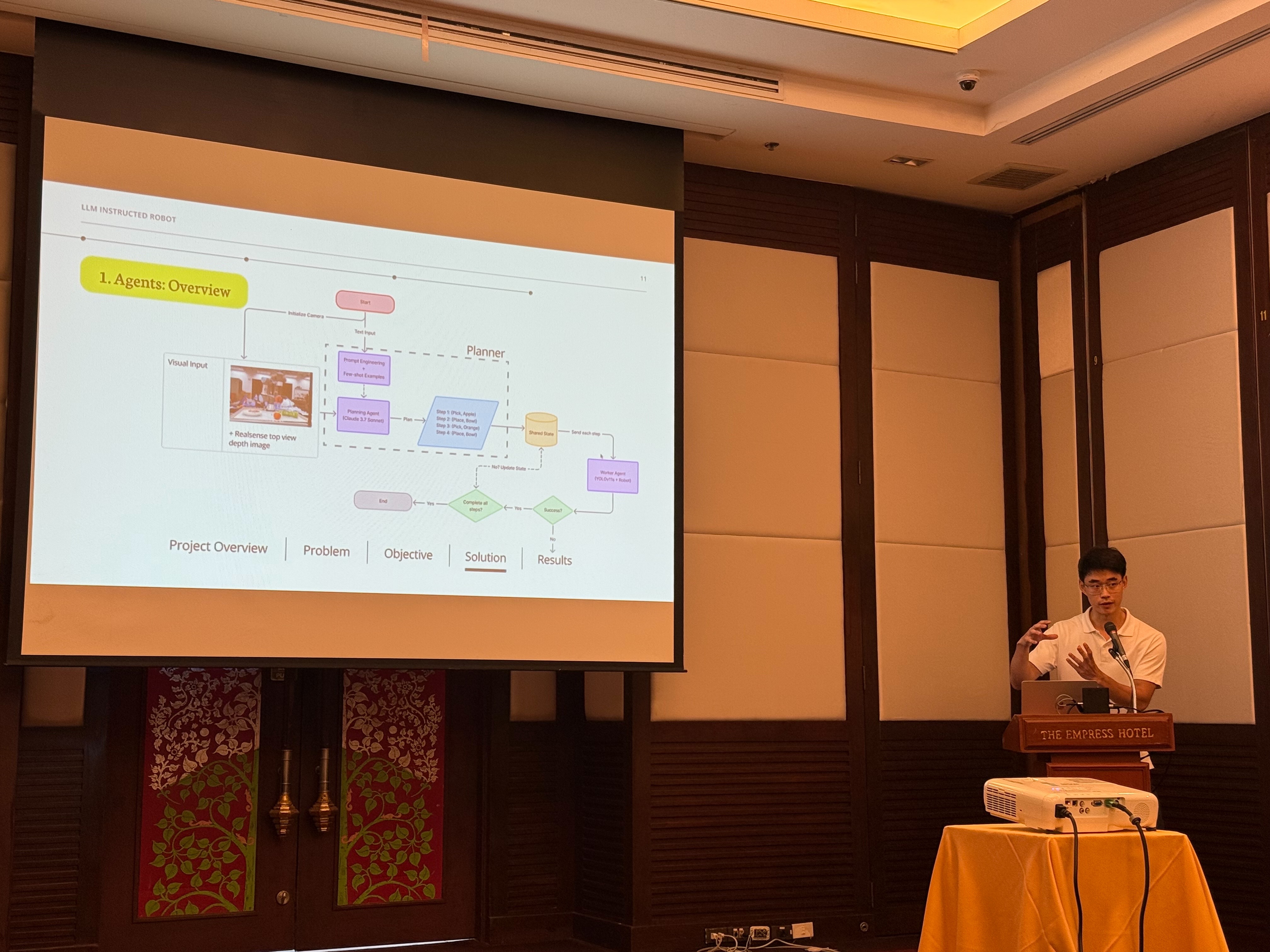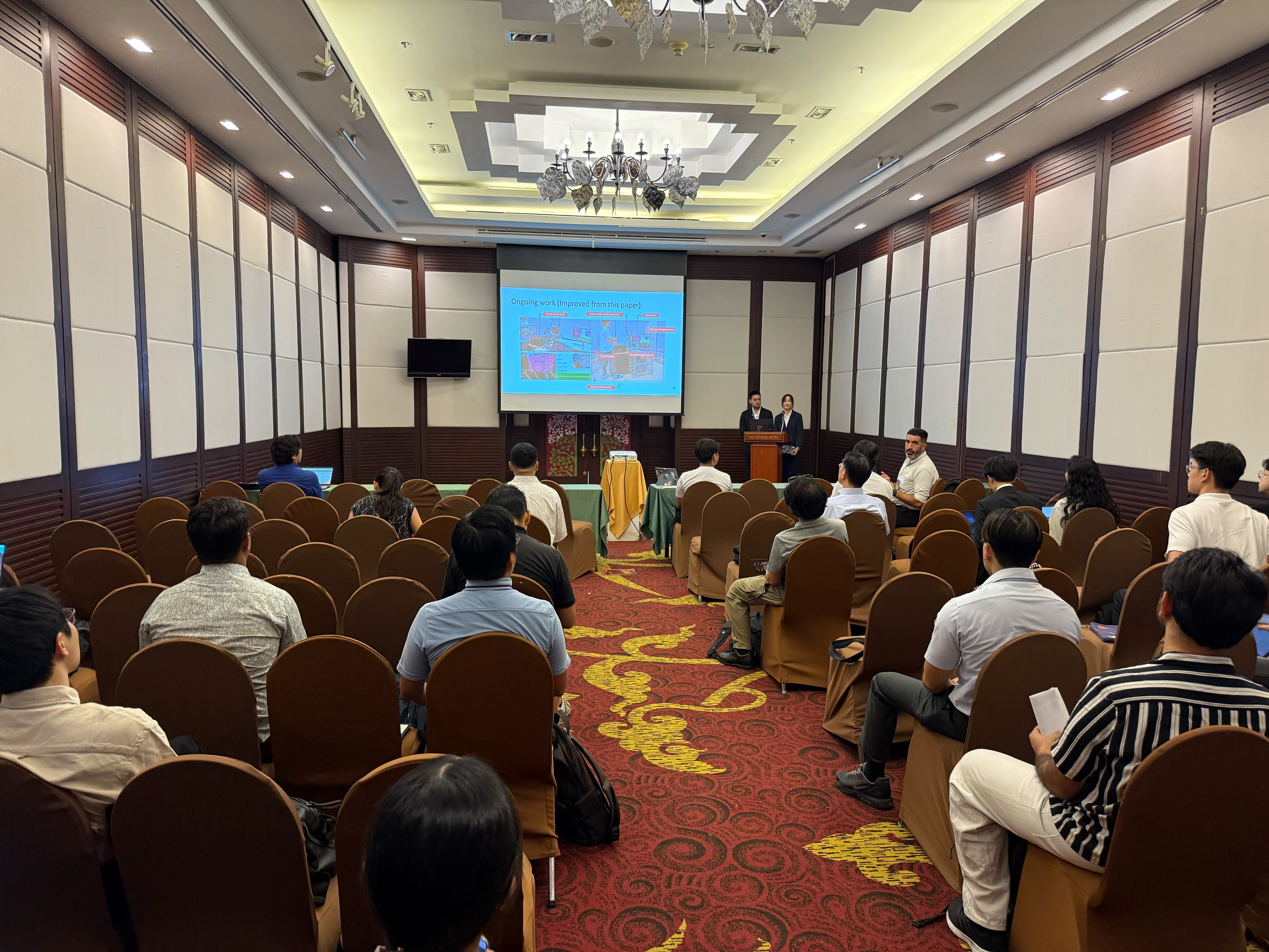 The paper entitled “Longer Context Vision-Language-Action Model Instructed UR Arm with Vacuum Gripper” was presented by Mr. Bhunakit Chantaraseno, Mr. Napat Saiyasitpanich, and Mr. Ratchapon Triruangworawat. This work was co-supervised by Dr. Jing Tang and Assoc. Prof. Ronnapee Chaichaowarat, Ph.D.