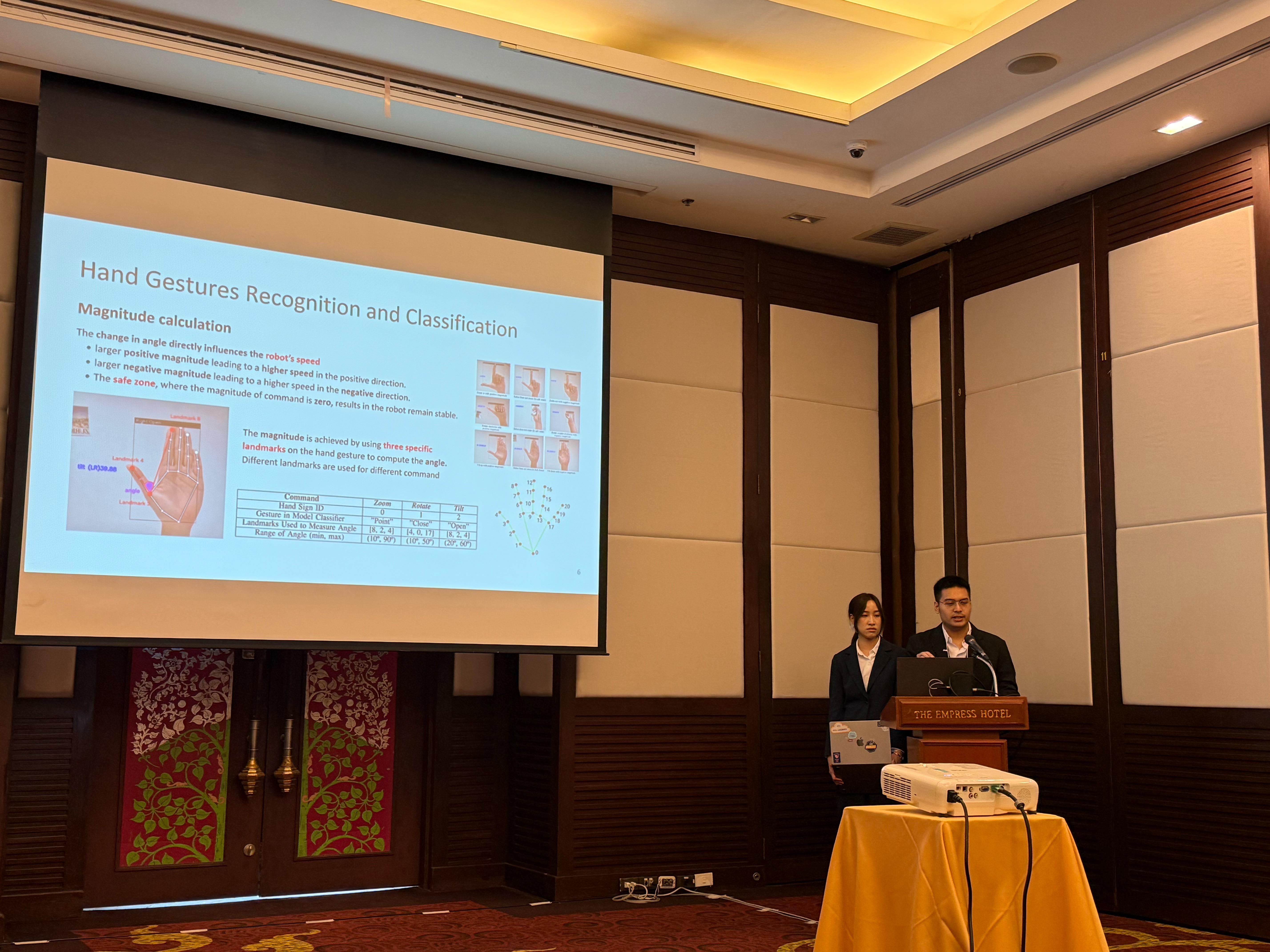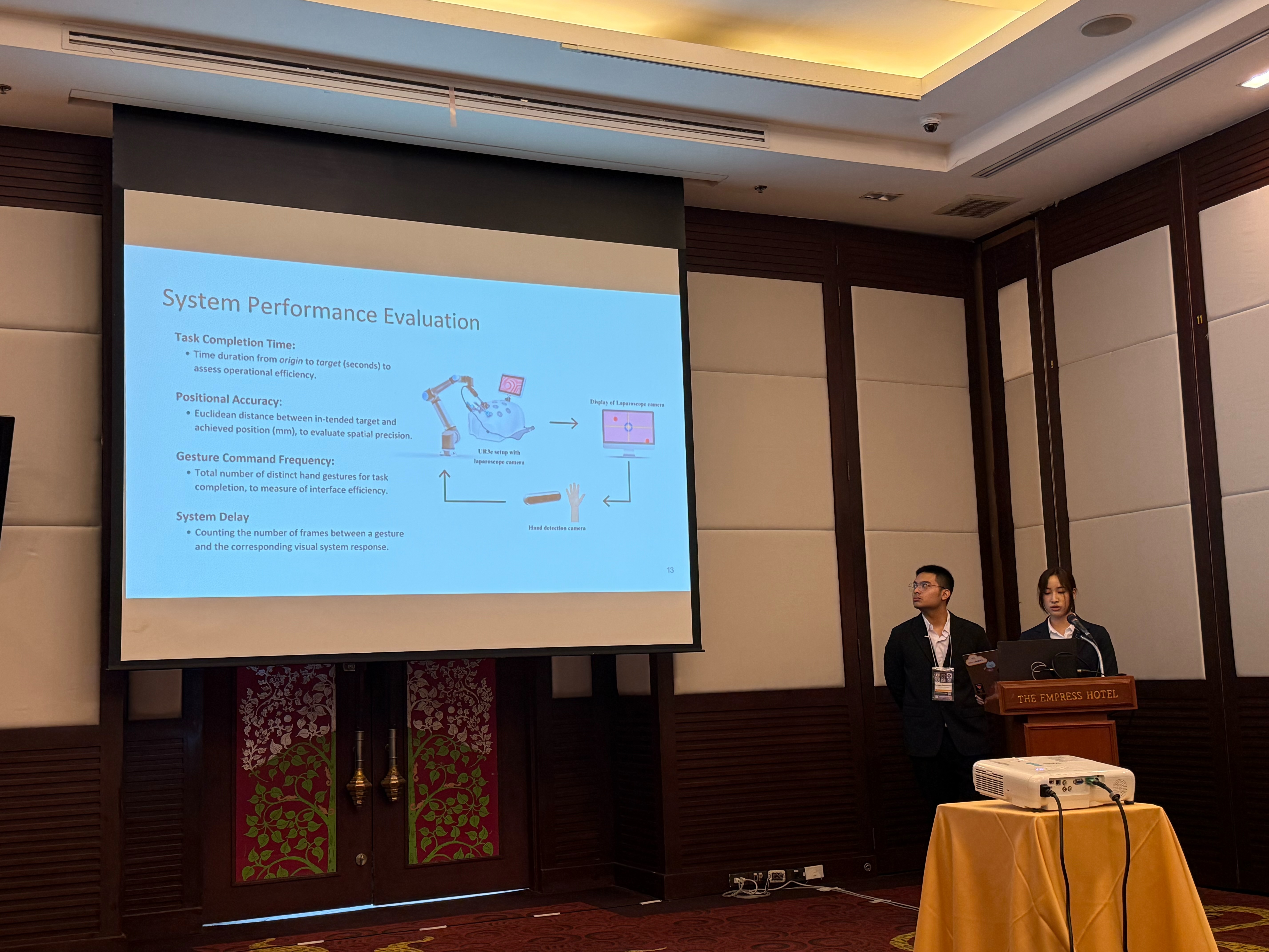 The paper entitled “Hand Gesture-Guided Robotic Manipulator for Handling Laparoscope During Minimally Invasive Surgery” was presented by Ms. Yada Suksawasdi, Ms. Tanyaton Oranrigsupak, and Mr. Norapath Arjanurak. This work was co-supervised by Assoc. Prof. Ronnapee Chaichaowarat, Ph.D. (ISE), Asst. Prof. Voranaddha Vacharathit, M.D., and Assoc. Prof. Sopark Manasnayakorn M.D., Ph.D. (Department of Surgery, Faculty of Medicine, Chulalongkorn University).