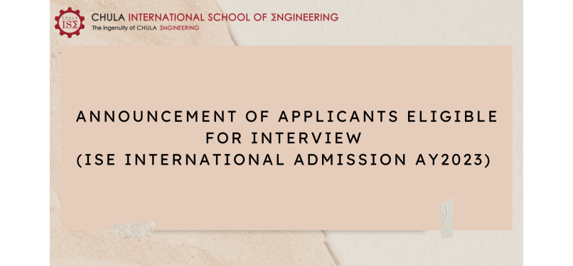 Applicants can check your application status through ISE Online Admission 2023: https://admission.ise.eng.chula.ac.th All selected applicants are required to confirm their enrollment by making a program fee payment to the International School of Engineering (ISE) on May 15, 2023 from 9.00 a.m. – 12.00 p.m. (Noon) through ISE Admission System. Failure to do so will result in forfeiting the admission to the program for the academic year 2023.