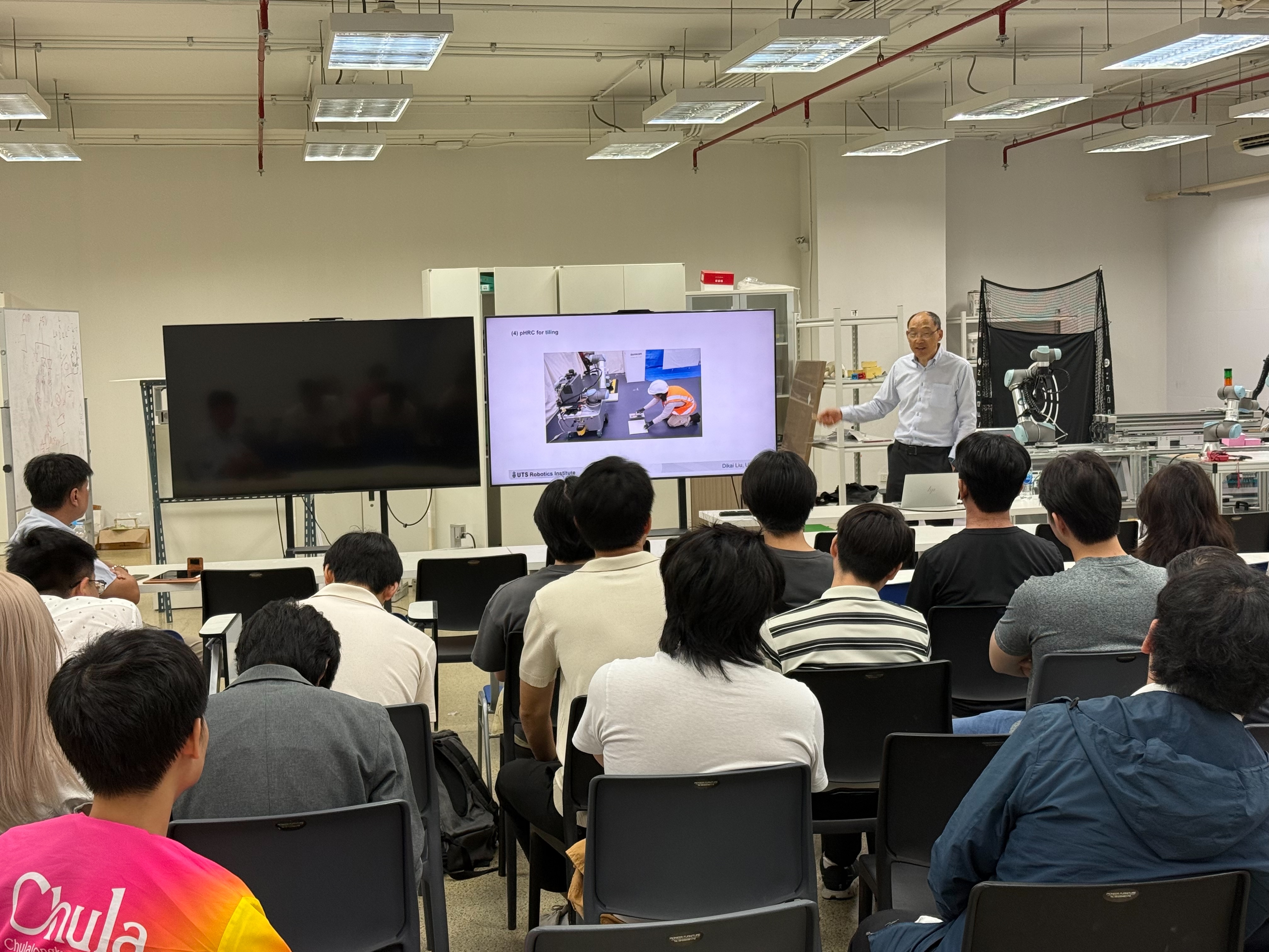 On Tuesday, October 14, 2025, Assoc. Prof. Ronnapee Chaichaowarat, Ph.D., organized a Special Lecture on Robotics under the topic “Physical Human-Robot Collaboration: Research Challenges and Applications.” The session was honored to have Prof. Dikai Liu, Distinguished Professor and Director of the ARC Research Hub for Human-Robot Teaming for Sustainable and Resilient Construction, School of Mechanical and Mechatronic Engineering, University of Technology Sydney, Australia, as the special guest speaker. In his talk, Prof. Liu outlined the major challenges in physical human-robot collaboration (pHRC) research, presenting various human modelling approaches and human models that enable intuitive and effective pHRC. He also shared detailed case studies illustrating the development and real-world deployment of intelligent robots designed for physical collaboration.