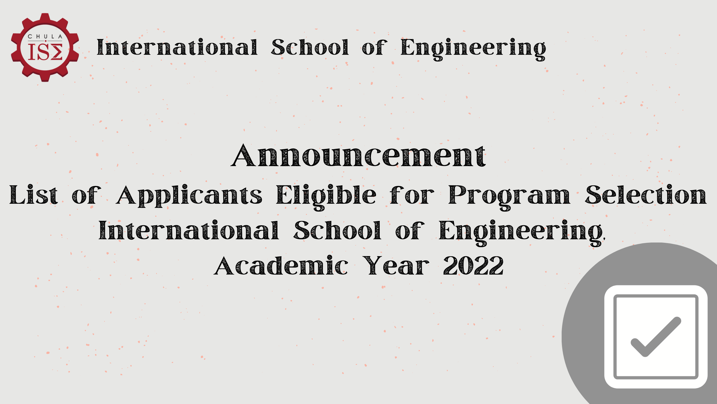 Announcement List of Applicants Eligible for Program Selection International School of Engineering, Academic Year 2022