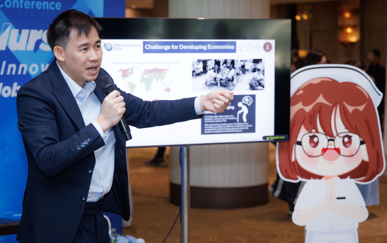 Assoc. Prof. Ronnapee Chaichaowarat, Ph.D., head of ISE Robotics Lab, was invited by World Academy of Nursing Science (WANS), Thailand Nursing and Midwifery Council, and the Nurses’ Association of Thailand to give a speech, entitled “Robot in Healthcare”, in the 2nd International Nursing Research Conference, on December 2, 2025, at Miracle Grand Convention Hotel, Bangkok.
