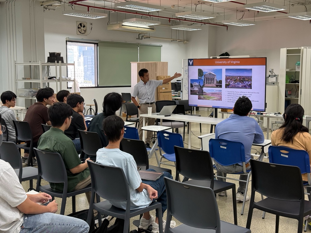 On Tuesday, December 16, 2025, the ISE Special Lecture on Robotics was honored to host Prof. Tomonari Furukawa, Professor and Zinn Faculty Scholar at the University of Virginia, and Honorary Professor at Chulalongkorn University, as the distinguished guest speaker. Prof. Furukawa shared research findings from the VICTOR Laboratory covering a wide range of topics, including fully autonomous rescue robots, humanoid robots, aerial–ground robot collaboration, human front-following robots, state estimation under extreme acceleration, and his experiences leading teams in several renowned international competitions. These included Virginia Tech’s Team VALOR in the DARPA Robotics Challenge (2015) and Team VICTOR in the Mohamed Bin Zayed International Robotics Challenge (MBZIRC) in 2017 and 2020.