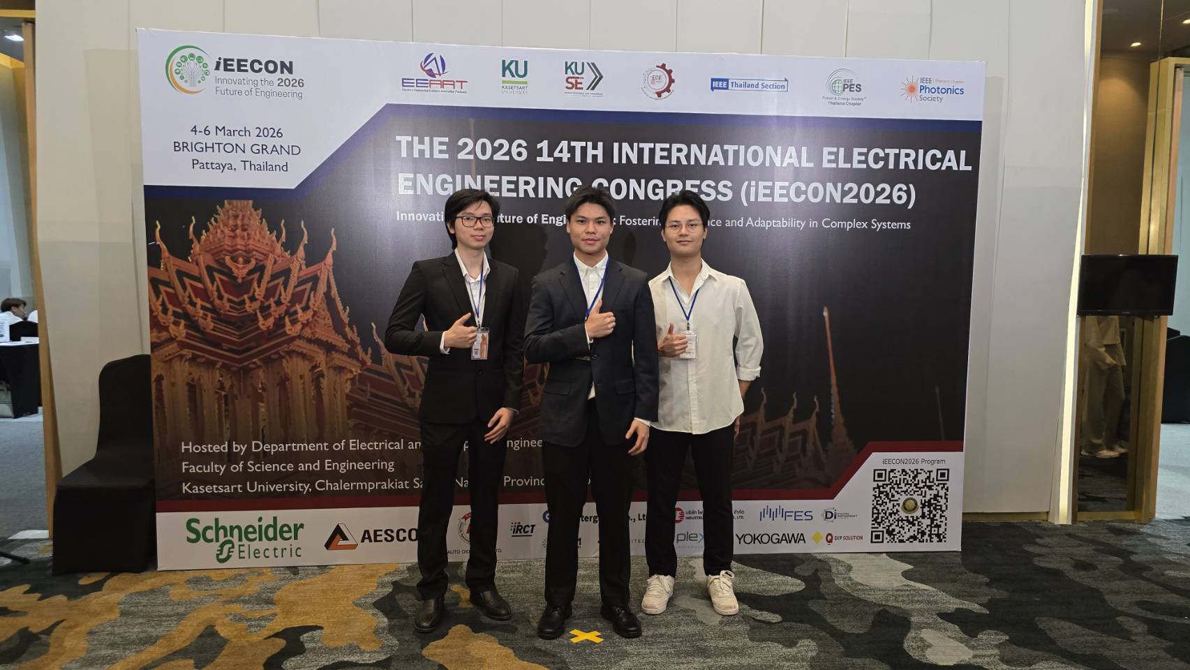 Three final-year students from the Information and Communication Engineering (ICE) program at the International School of Engineering successfully presented their senior research project at the International Electrical Engineering Congress 2026, an international conference held in Pattaya and jointly organized with the IEEE Thailand Section. The congress brings together researchers, engineers, and industry professionals to share advances in electrical and digital technologies. The students—Parm Suksakul, Nathan Kittichaikoonkij, and Nakhin Polthai—presented their research titled “Understanding Human-in-the-Loop Governance in AI Application Development: Empirical Themes and an Analytic Three-Pillar Model.” The project is conducted under the supervision of Dr. Aung Pyae, a lecturer in the ICE program. The study examines how organizations maintain effective human oversight as artificial intelligence becomes more embedded in operational decision-making. Drawing on qualitative data from a diary study of a production customer-support chatbot and interviews with AI practitioners from academia and industry, the research identifies key patterns in how human roles, responsibilities, and collaboration with AI systems are structured throughout the development and deployment lifecycle. Based on these findings, the research proposes a three-pillar framework for operationalizing Human-in-the-Loop governance in real-world AI systems. The framework highlights three core elements—authority, traceability, and lifecycle gates—to support clear decision responsibility, transparent documentation, and structured checkpoints where human oversight is integrated into the AI lifecycle. Grounded in observations from an enterprise customer-support environment, the study offers practical insights for organizations seeking to deploy AI responsibly while maintaining human accountability. Presenting this work at iEECON 2026 represents an important academic milestone for the students and reflects the ICE program’s commitment to advancing research in responsible AI development and human-centered technology. The team also gratefully acknowledges the support of the International School of Engineering (ISE) for providing funding that enabled their participation in the conference.